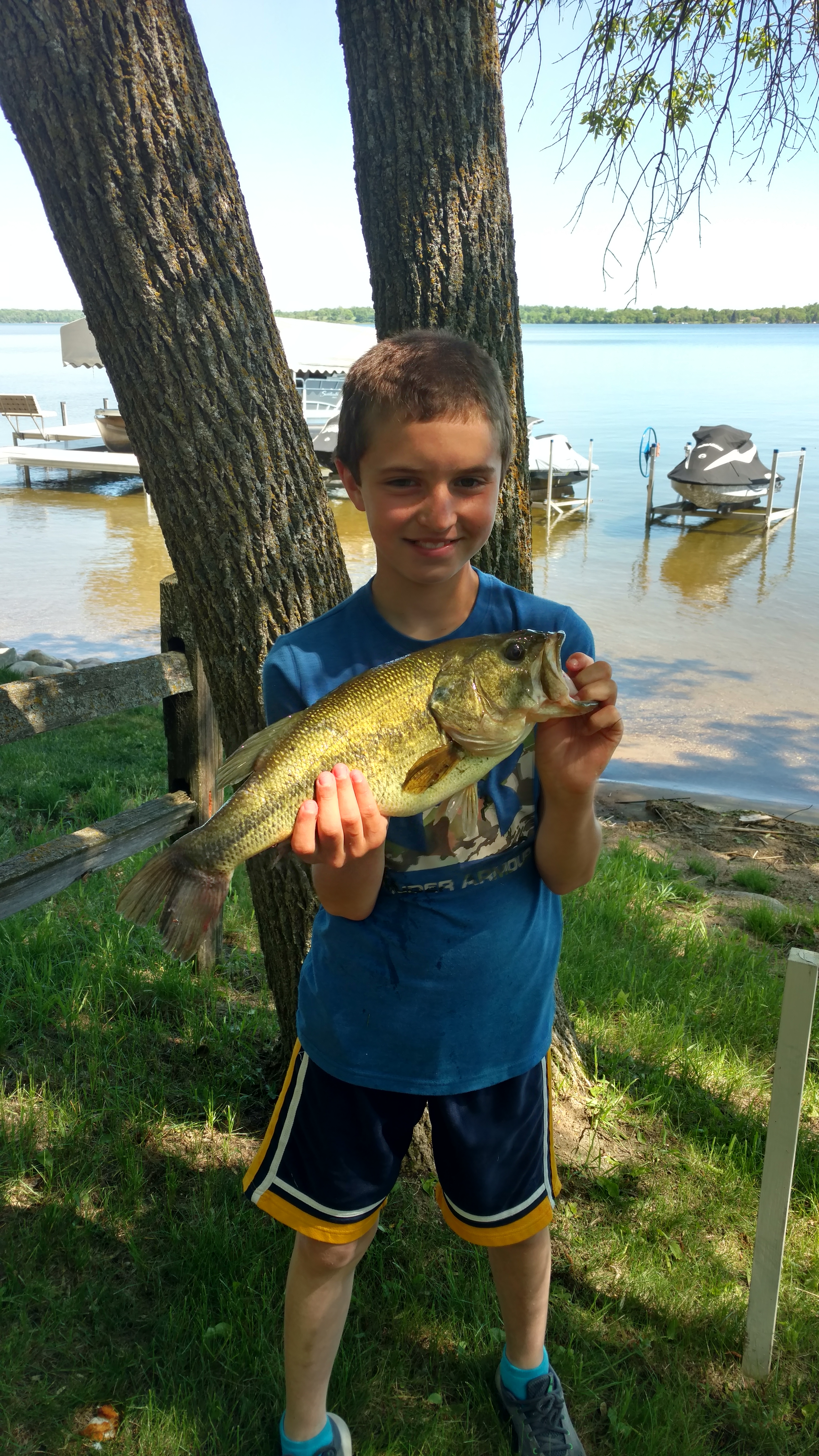• Catch Story: Caught at 8:50AM on the south side of the large island using a 6" rubber creature bait worm. This the biggest catch of my ten year old life. I have been fishing in Minnesota since I was 4.